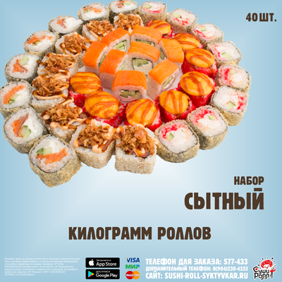 К данному набору бесплатно прилагается: соевый соус (140 мл), маринованный имбирь (40 гр), васаби (15 гр).